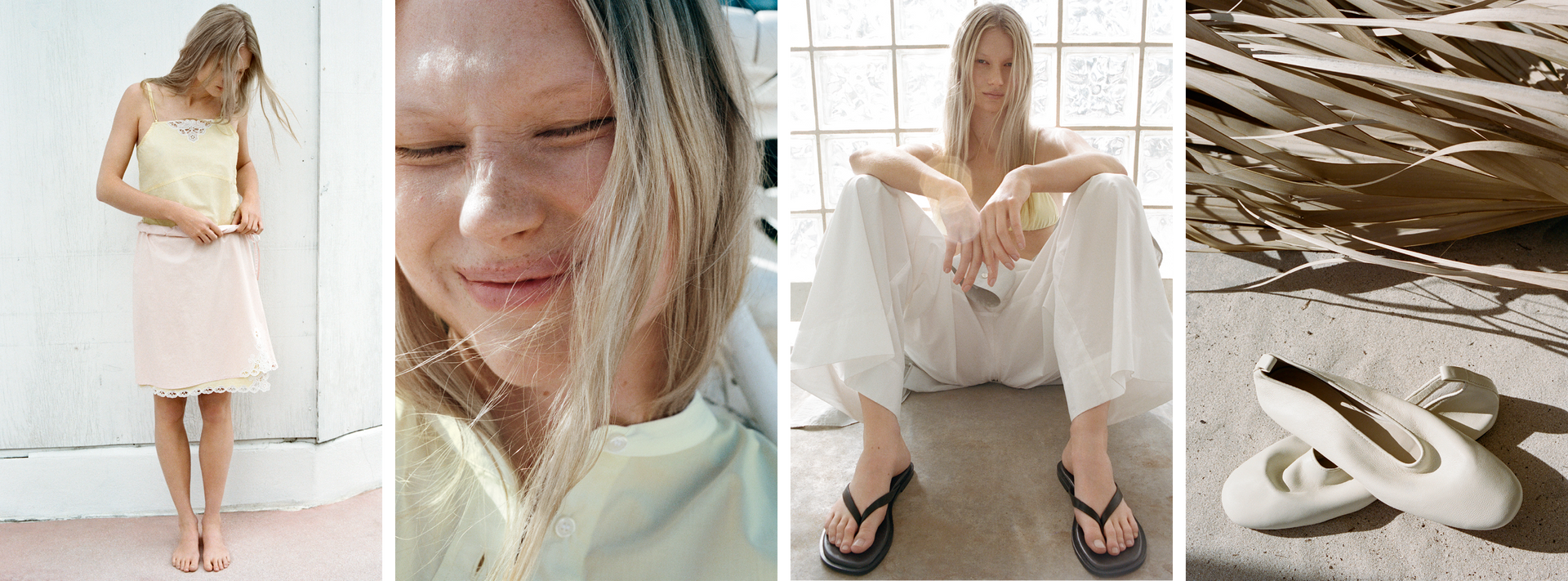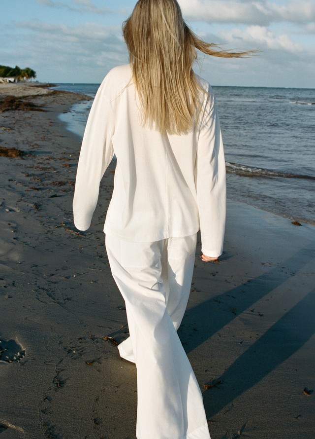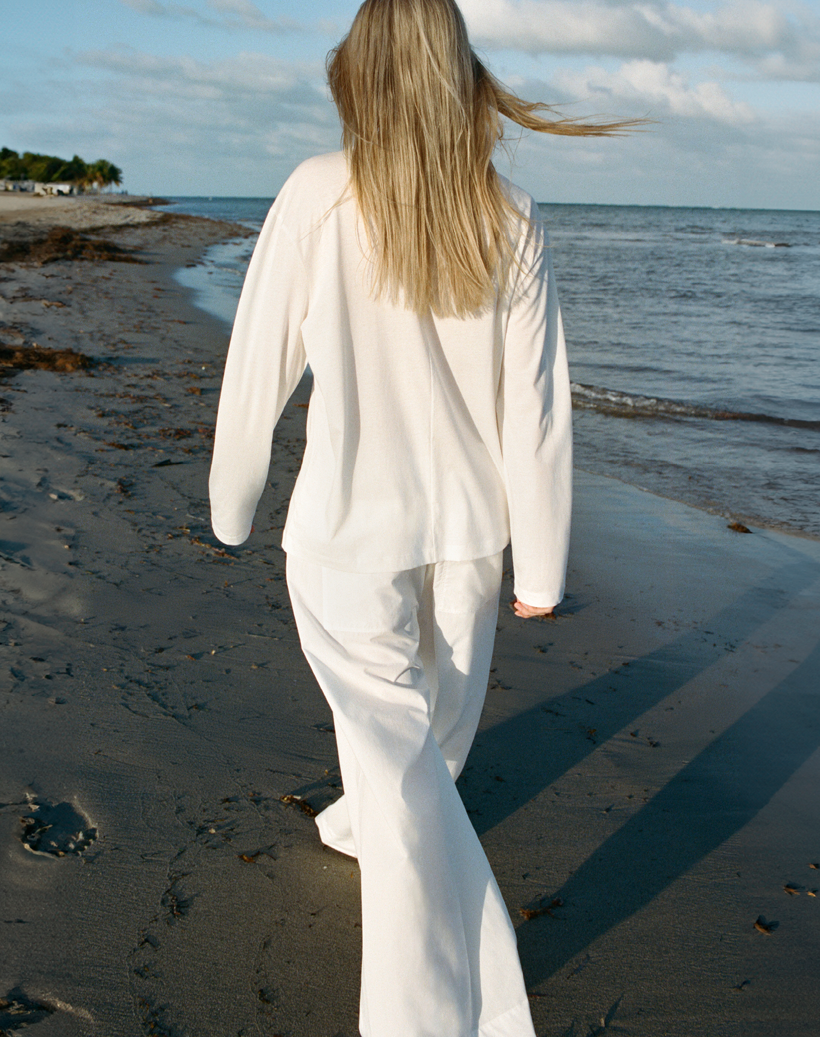 Dans un cadre lumineux et moderniste, sous l'objectif de Gillian Garcia, la silhouette traverse la ville comme un décor cinématographique. Une allure naturelle, libre et instinctive. Un vestiaire de matières aériennes et de nuances claires, où l'océan, l'architecture et le corps se répondent dans un même mouvement.