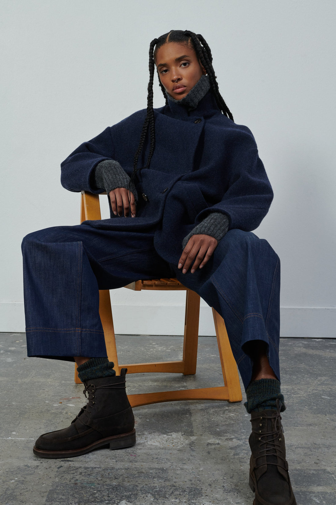Bottines en cuir huilée charbon - Bottines montantes à lacets- Texture huilée naturelle- Jeux de découpes et surpiqûres- Crochets en métal- Hauteur de tige 14cm- Hauteur de talon 3cm- Cuir LWG