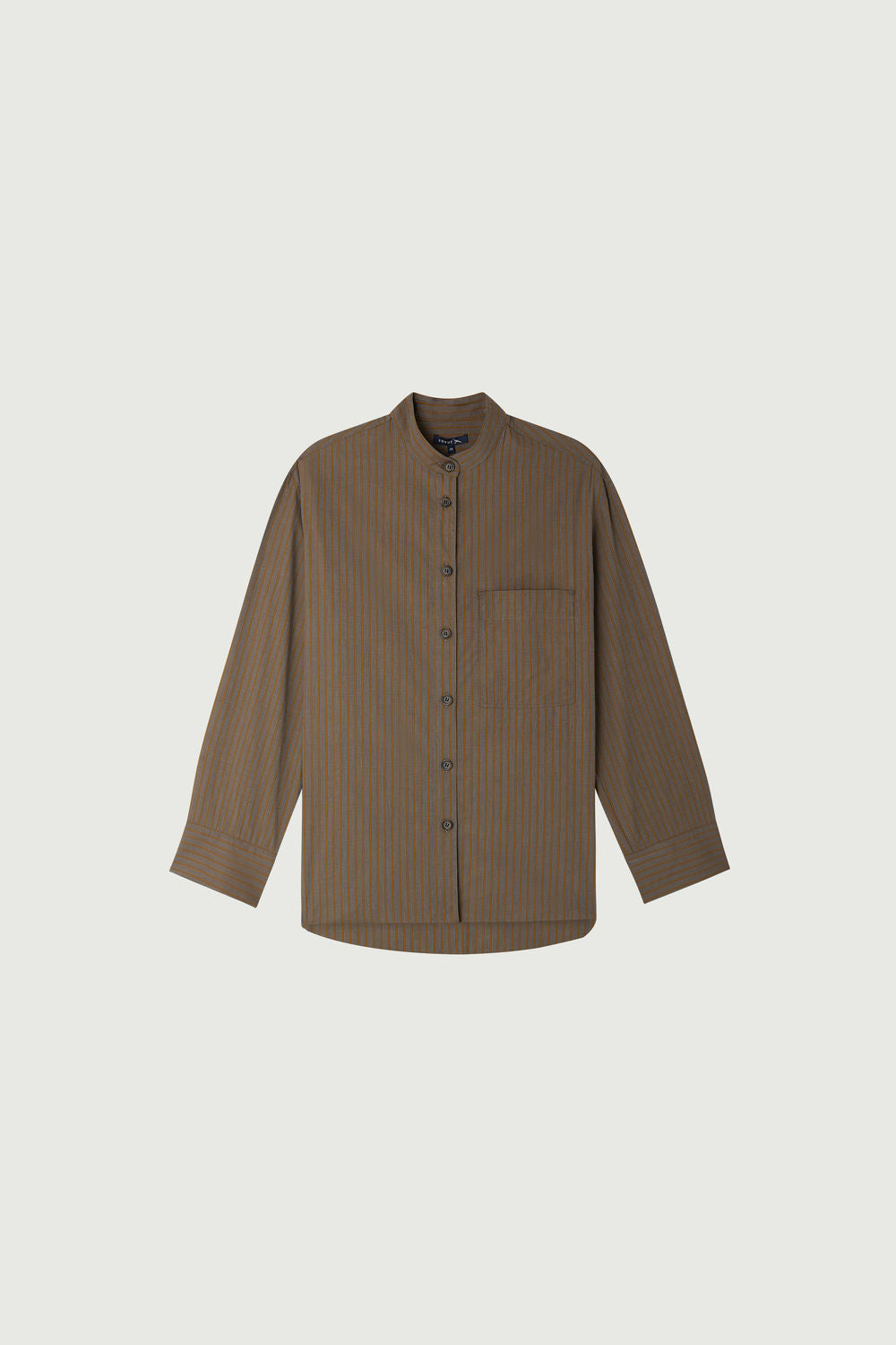 CALISTE est une blouse réalisée en popeline froissée gris anthracite. Twistée par des carreaux doux teinté de marron et de rose pâle, elle se stylisera facilement avec un pull sans manches, ou toutes les pièces de votre garde-robe.