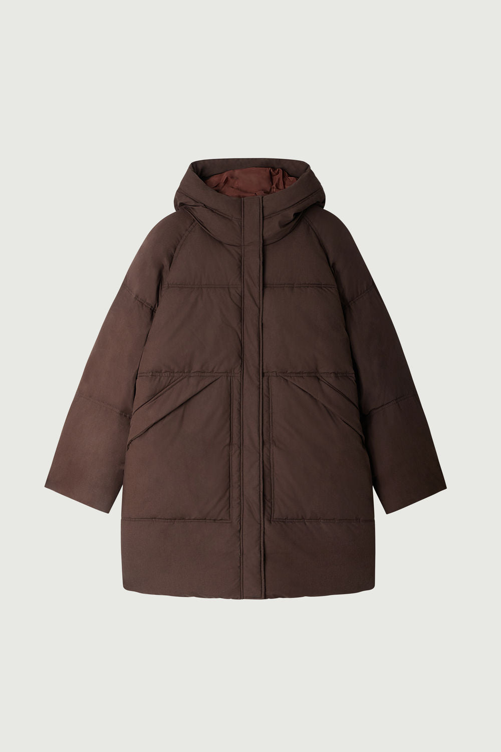 STORM est une doudoune oversize à capuche, idéale pour l’hiver. Ce manteau long matelassé, avec des manches longues raglan, offre confort et chaleur. L'ouverture à patte de boutonnage cachée avec zip garantit une allure épurée, tandis que sa teinte marron s'intègre facilement à toute garde-robe hivernale.