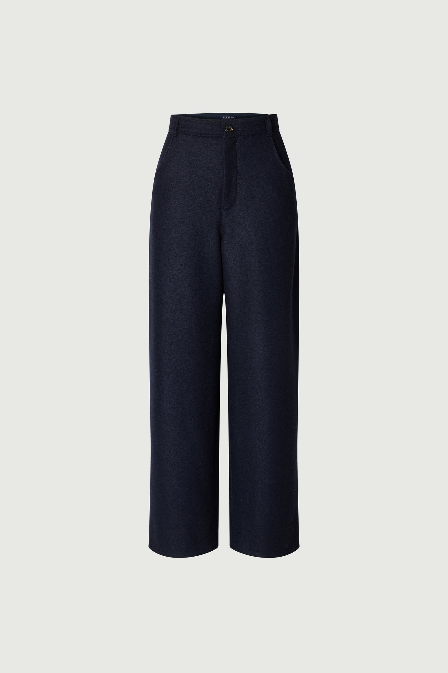 BAYONNE est un pantalon en laine bouillie à l'esprit minimal aux bords francs et bruts, sans couture. Il se distingue par sa jambe arrondie et son tombé et sa taille sans pince qui s'adapte à toutes les morphologies.