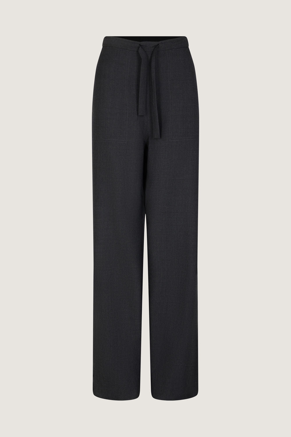 VIVIAN est un pantalon en lainage souple et fin. Sa taille élastiquée et ses jambes larges le rendent particulièrement confortable et adapté à toutes les morphologies.