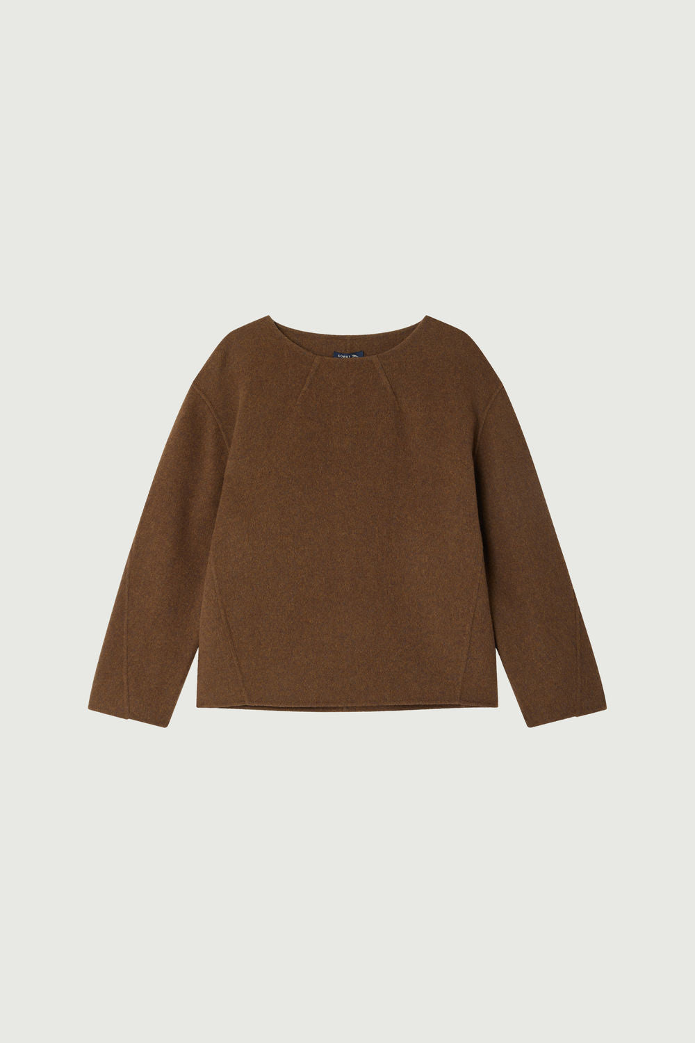AMEDEE est un pull court et ample en lainage chaud. Il se distingue par des détails de pinces en bas de corps et aux manches qui renforcent sa coupe arrondie. Le double face laine est particulièrement isolant, il tient très chaud tout en étant souple et doux.