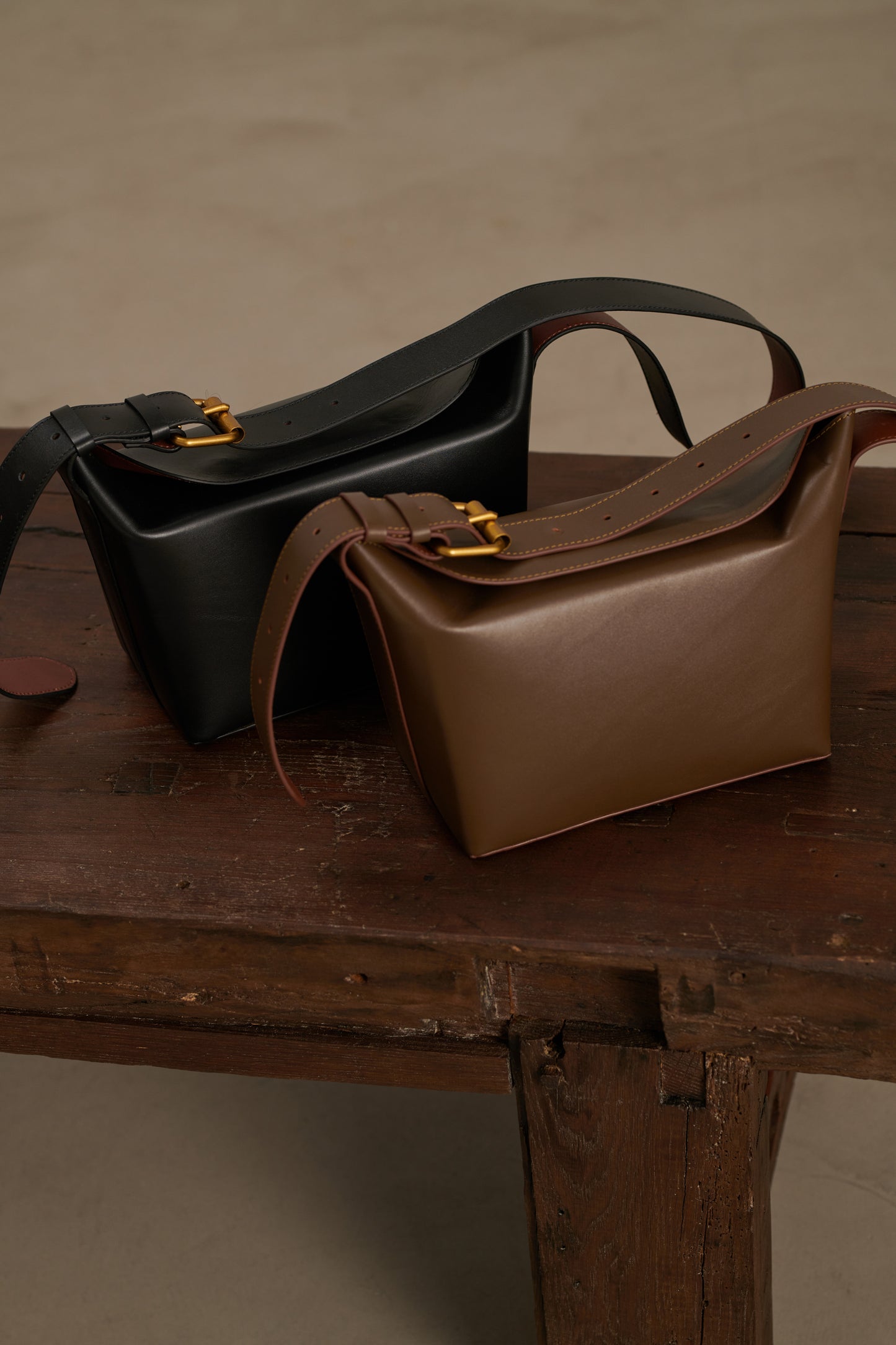 sac solstice Sac bicolore en cuir lisse noir/cognac